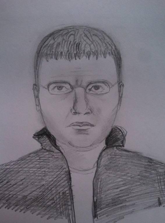 Приметы подозреваемого (фоторобот): мужчина 35-40 лет, славянского типа внешности, рост 170-175 см, среднего неспортивного телосложения, лицо круглое, волосы и брови темно-коричневого цвета, волосы короткие, губы пухлые, прямо расположены, нос круглый, небольшого размера, глаза средние, темные, щетина на лице, носит очки полукруглом.