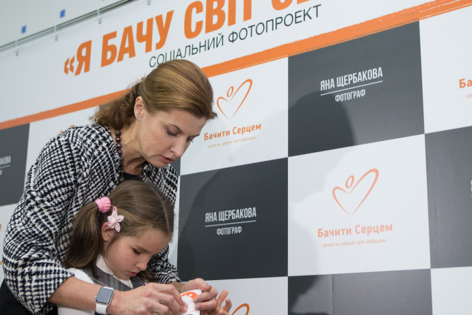 Супруга Президента Украины Марина Порошенко приняла участие в официальном открытии социальной фотовыставки Яны Щербаковой "Я вижу мир сердцем", посвященной проблемам семей, воспитывающих детей с особыми потребностями. На торжественном открытии присутствовали родители и дети, которые являются главными героями этого фотопроекта.
