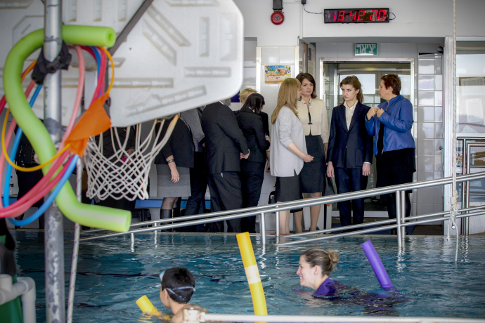 Директор школы и детского сада госпожа Ирэна ознакомила Марину Порошенко с условиями обучения и подготовки израильских детей с особыми образовательными потребностями к включению в активную общественную жизнь. В центре занимаются дети от 3-х до 21 лет. "Мы учим детей и их семьи принимать условия нового образа жизни, не терять надежду и веру в будущее, потому что в таких ситуациях в реабилитации нуждается каждый член семьи. Главный акцент реабилитационной методики центра "Alyn" то, что ребенок делает все, что ему нравится, в контексте необходимых учебно-медицинских процессов", - отметила госпожа директор.