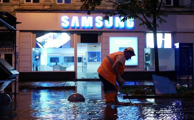 На нескольких улицах ливневки не справились с потоком воды и коммунальные службы утром откачивали ее. В частности, полностью был затоплен Крещатик, а с перекрестка улиц Телиги и Щусева выкачали 45 кубометров воды.
